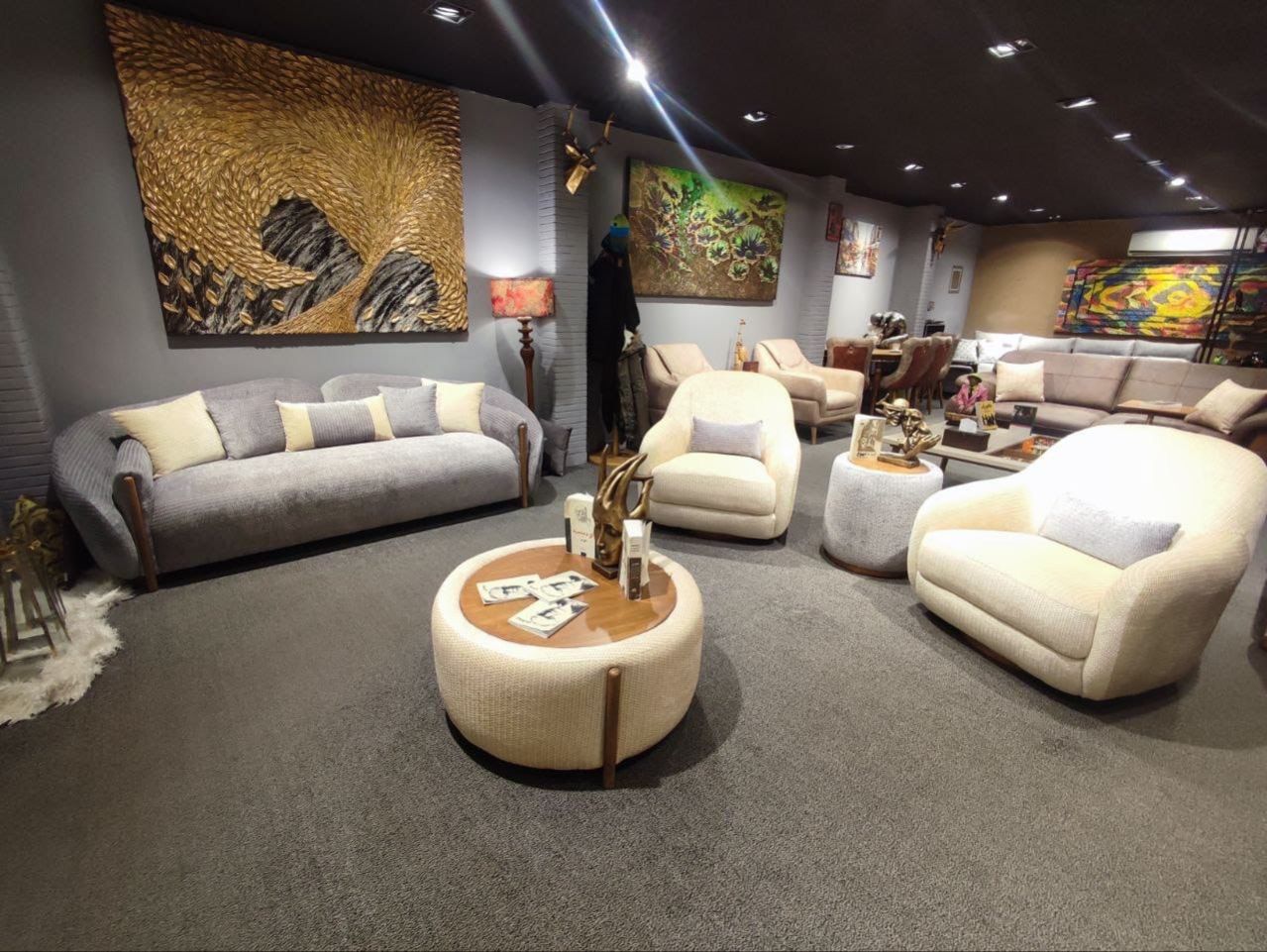 طقم الجلوس لعشرة أشخاص يجمع بين الأناقة والمتانة، يضمّ قنفتين وأربعة كراسي مفردة. مصنوع من خشب روسي عالي الجودة، مع قماش تركي فاخر وفوم ناعم يوفّر أقصى درجات الراحة والثبات.