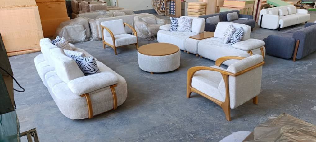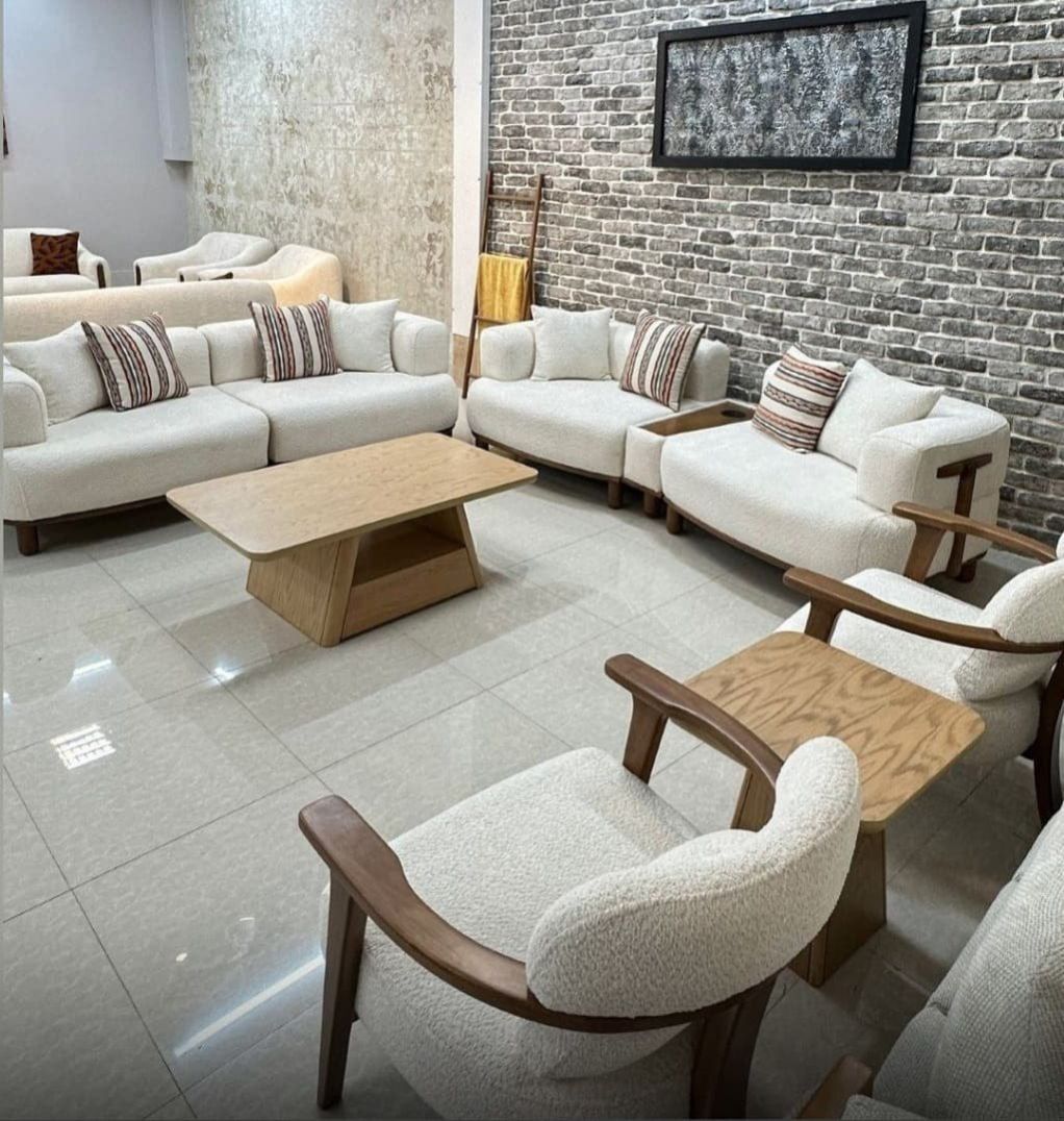 طقم الجلوس لعشرة أشخاص يجمع بين الأناقة والمتانة، يضمّ قنفتين وأربعة كراسي مفردة. مصنوع من خشب روسي عالي الجودة، مع قماش تركي فاخر وفوم ناعم يوفّر أقصى درجات الراحة والثبات.